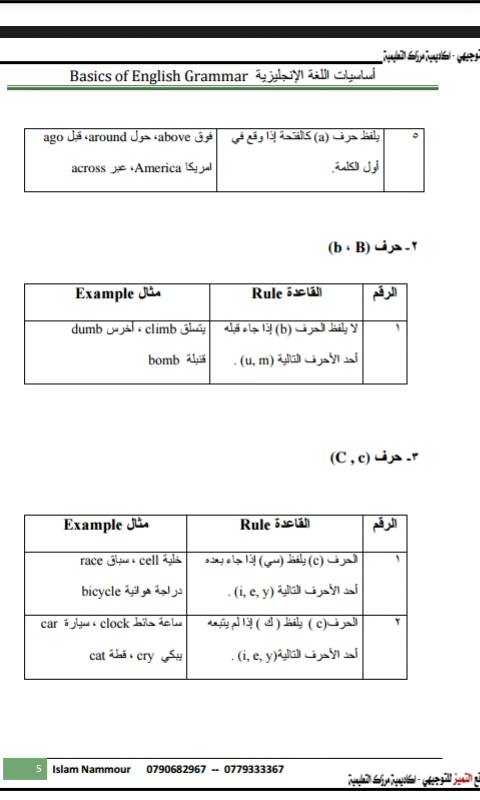 قواعد قراءة اللغة الإنجليزية منسقة باللغة الإنجليزية والعربية