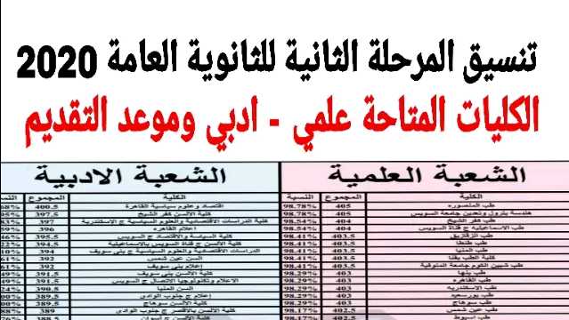 أعلان تنسيق الثانوية العامة المرحلة الثانية للقبول فى الجامعات للعام الجديد 2020 2021 الكليات المتاحة والمتبقية للمرحلة الثانية من تنسيق الكليات والمعاهد الحكومية ادبي وعلمي كاملة. موعد تنسيق المرحلة الثانية 2020 والكليات المتبقية في المرحلة الثانية من تنسيق الجامعات عبر بوابة الحكومة المصرية tansik gov eg. نتيجة تنسيق المرحلة الأولى 2020. الكليات المتاحة لطلاب المرحلة الثانية من تنسيق الثانوية العامة 2020 لطلاب الأدبى والعلمي من أهم ما يبحث عنه الطلاب فى الساعات الأخيرة من اليوم وذلك بعد الاقتراب من انتهاء المرحلة الأولى من التنسيق والتى من المقرر أن تتنهى خلال الأيام.