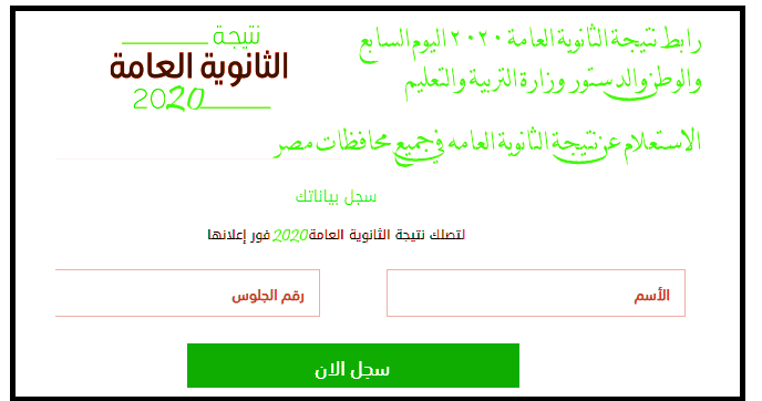 حالا رابط موقع اليوم السابع نتيجة الثانوية العامة ٢٠٢٠ برقم الجلوسnatega Youm7 Com عبر موقع وزارة التربية والتعليم إقرأ نيوز
